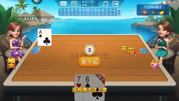 5、当没有牌大过上家时,系统会提示要不起,直接跳过