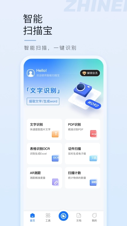智能扫描宝是一款专业的拍照扫描文档、证件的软件,可以快速实现扫描合同、文档材料、身份证户口本、拍照识别钢管等实用功能,是办公室白领、面试招聘、建筑装饰等行业人士的办公好助手。