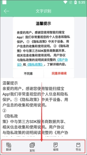 5、识别出的文字,还支持翻译、复制、编辑、导出等操作,非常方便。
